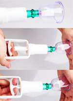 With 2 pairs of 6 cups in graduated sizes from .625 inch to 2.25 inches inner diameter, you can experiment with powerful suction and increased sensitivity! Stemming from Chinese medicine, this unique method of relieving sore and aching muscles also makes for an erotic massage, intense BDSM play, or an exciting exploration of self-pleasure. Simply place one or more cups directly onto the skin, creating a strong seal, and attach the handheld pump to the green and red tip of the cup. Pull the pump trigger to create suction, working towards your comfort level. Lubricate the skin first in order to slide the cups around for different sensations. The pump may be detached and the cups will still remain attached to the skin by the vacuum and has 30 inches of clear flexible hose. There are Acu-Points centered at the top of the cups that can provide additional stimulation against the skin like acupuncture, should you choose to pump that far. When you are finished, the pressure released easily by pressing on the red tip. Measurements: Inner diameters from smallest to largest: