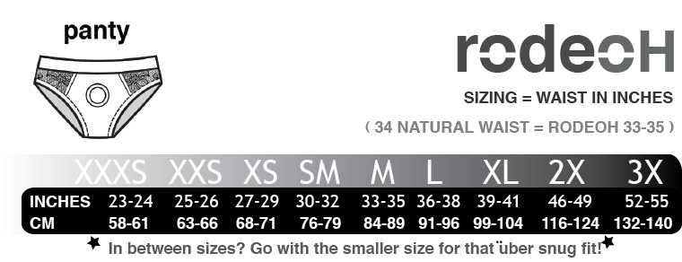 Important: Choose your harness size based on both your actual body measurements and body shape, not based on your typical pant or jean size, which varies significantly between brands, designs, and cuts. Please don't skip this step: the right size harness will give you the most comfort and support, and will always look better than a size that's just "almost right."